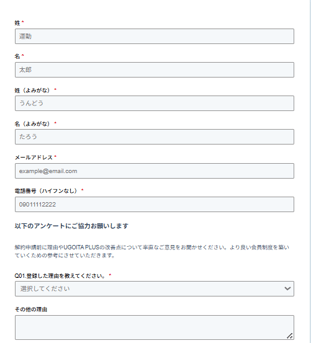 ②解約申請フォームが表示されますので、入力して「送信」してください。