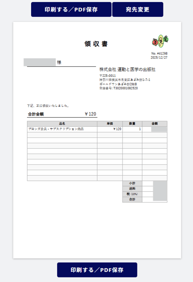 ③「印刷する/PDF保存」を選択すると、領収書が発行できます。