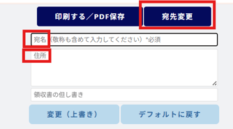宛名欄に氏名、住所欄に施設名を入力してから、「変更」ボタンを押してください。