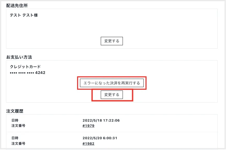 また、お支払いに失敗されている場合は、カード情報を変更しても、失敗した支払いの再試行はできません。