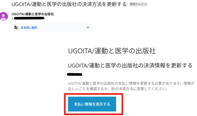 ⑤受信したメールから「支払い情報を表示する」を選択します。