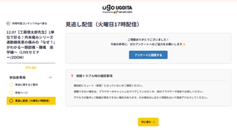 〇見逃し配信(火曜日17時配信)は開催後翌週の火曜日17時に動画掲載